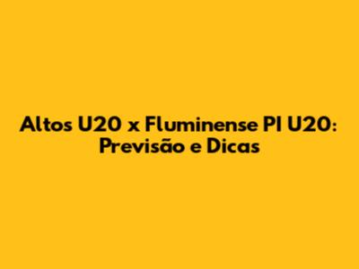 Altos U20 X Fluminense PI U20: Previsão E Dicas