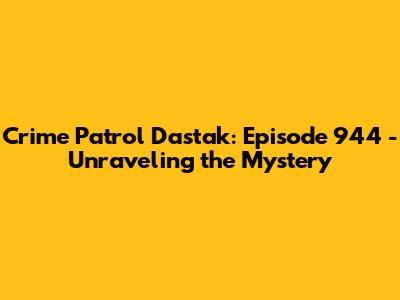 Crime Patrol Dastak: Episode 944 Deep Dive