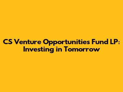 CS Venture Opportunities Fund LP: Investing In Tomorrow