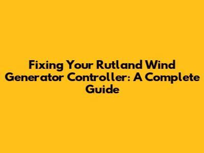 Fixing Your Rutland Wind Generator Controller: A Complete Guide