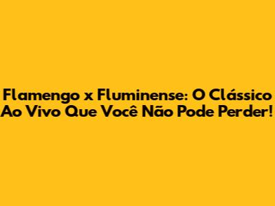 Flamengo X Fluminense: O Clássico Ao Vivo Que Você Não Pode Perder!