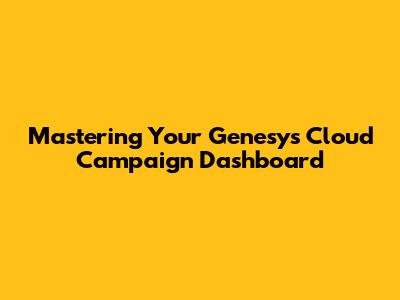 Hey everyone! Today, we're diving deep into something super important for anyone using Genesys Cloud for their outreach efforts: the Genesys Cloud Campaign Dashboard. If you're looking to get a solid grip on how your marketing and sales campaigns are performing, this is your go-to spot. We're talking about understanding your data, making smart decisions, and ultimately, boosting your campaign success. So, grab your favorite beverage, and let's break down what makes this dashboard such a game-changer.