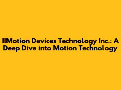 Hey tech enthusiasts! Ever wondered about the future of motion technology? Well, IIMotion Devices Technology Inc. is at the forefront, and today, we're diving deep into what makes them tick. From innovative product development to cutting-edge research, IIMotion is making waves. So, buckle up, because we're about to explore the exciting world of IIMotion Devices and what they're bringing to the table. Let's get this party started, shall we?