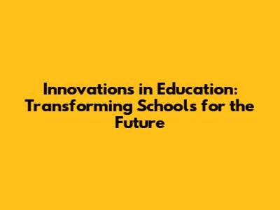 Innovations In Education: Transforming Schools For The Future