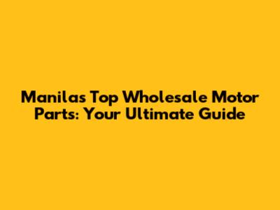 Manila's Top Wholesale Motor Parts: Your Guide