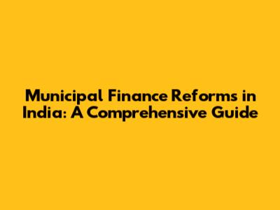 Municipal Finance Reforms In India: A Comprehensive Guide