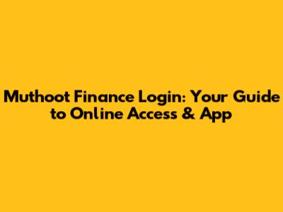 Muthoot Finance Login: Online Access & App Guide