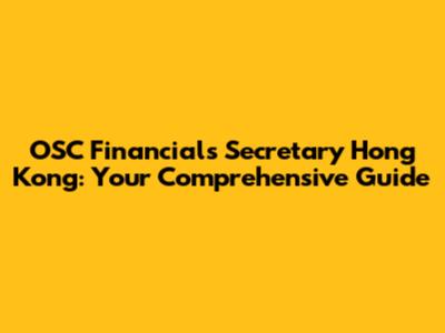 Hey guys, let's dive into the fascinating world of OSC Financials Secretary in Hong Kong! If you're scratching your head about what that even means, don't worry, we'll break it down piece by piece. This guide is designed to be your go-to resource, covering everything from the basic responsibilities of an OSC Financials Secretary to how they fit into the broader financial landscape of Hong Kong. We'll explore the key duties, qualifications, and the crucial role these professionals play in ensuring businesses operate smoothly and compliantly. Whether you're a seasoned finance pro, a business owner, or just curious about this niche, you'll find something valuable here. So, buckle up, because we're about to embark on a journey through the ins and outs of this important role. We'll look at the specific challenges and opportunities within the Hong Kong context, where financial regulations and practices can be quite unique. Get ready to learn about the significance of this role, how it contributes to the economic health of Hong Kong, and what it takes to succeed in this dynamic field. By the end of this guide, you'll have a solid understanding of the OSC Financials Secretary and their impact on the Hong Kong business scene. So, let's get started and unravel the complexities together! It's going to be a fun and informative ride, so let's jump right in. We'll cover everything from the day-to-day tasks to the long-term career prospects, giving you a complete picture of what it means to be an OSC Financials Secretary in the bustling financial hub that is Hong Kong.