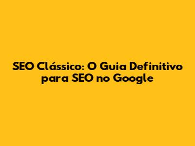 SEO Classico: O Guia Definitivo Para SEO No Google