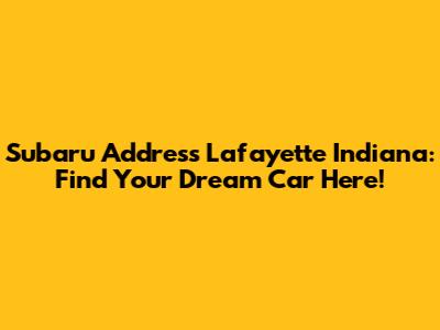 Looking for a reliable and stylish Subaru in Lafayette, Indiana? You've come to the right place! Finding the exact address and navigating the car-buying process can sometimes feel like a maze, but don't worry, guys, I'm here to guide you through it all. Whether you're searching for a brand-new Subaru or a quality pre-owned vehicle, knowing the dealership's location is the first step toward getting behind the wheel of your dream car.