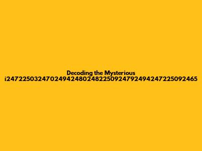What in the world is i247225032470249424802482250924792494247225092465? Guys, if you've stumbled upon this string of characters and are scratching your head, you're not alone. It looks like a jumble of numbers, and honestly, it could mean a whole bunch of things depending on where you found it. Is it a product code? A serial number? Maybe a cryptic identifier for something super niche? Without more context, it's like trying to solve a puzzle with half the pieces missing. But hey, that's what makes digging into these things fun, right? Let's try to break down some possibilities for what this alphanumeric sequence might represent and how you might go about figuring out its true meaning. First off, let's consider the structure itself. It's a mix of 'i' followed by a long string of digits. This kind of format is pretty common in the tech world, for product IDs, internal tracking numbers, or even unique keys for software or services. Think about online orders, where you get a long string for your tracking number, or a software license key. Sometimes, these numbers are generated algorithmically, meaning they follow a specific pattern or rule set that the creator uses. This can make them unique and hard to guess, which is great for security but can be a nightmare for users trying to decipher them. Another angle to explore is the possibility of it being a reference to a specific database entry or a record in a large system. Many companies and organizations use these kinds of identifiers to manage vast amounts of data. For example, a library might use a similar format for its catalog entries, or a scientific research project might assign unique IDs to its datasets. If you found this number in a technical document or a log file, it's almost certainly an identifier for something specific within that system. The 'i' at the beginning could even be a prefix that signifies a certain category or type of item. For instance, it might stand for 'item', 'identifier', 'instance', or even a company name initial. Knowing what system or platform generated this number is key to unlocking its meaning. Is it from a website you visited? An email you received? A piece of hardware you own? Each of these sources will point you in a different direction for your investigation. We'll delve deeper into how to potentially uncover the origin and purpose of this peculiar code.