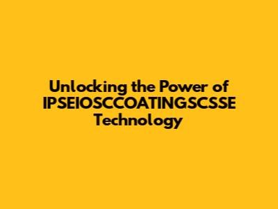 Unlocking The Power Of IPSEIOSCCOATINGSCSSE Technology