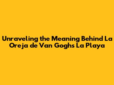 Unraveling The Meaning Behind La Oreja De Van Gogh's 'La Playa'