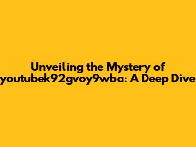 Unveiling The Mystery Of Youtubek92gvoy9wba: A Deep Dive